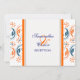 Os redemoinhos lunáticos da flor e da folha nas laranjas, nos azuis e nos brancos são limitados por um embutimento afiado ouro em que os modelos customizáveis são colocados. PERSONALIZE-O - mude o fraseio, o tamanho/cor e o estilo da pia batismal e do movimento/adicionam ou suprimem de todo o modelo para fazê-lo original. IDEAL PARA - cartões da recepção para alguns país/natureza/casamentos exteriores/jardim ou da piscina; um almoço do primavera ou do verão/evento do comensal ou do pequeno almoço; para de "celebrações do dia primavera" ou qualquer noivado ou chá de panela formal do verão você pode hospedar. PEDIDOS do COSTUME - para produtos de harmonização, o auxílio ou as mudanças da cor contactam-me em clientrequestrw@gmail.com