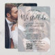 Se circunstâncias inesperadas causaram o adiamento da recepção do seu casamento, o primeiro aniversário é uma ótima oportunidade para celebrar um ano depois. Convide familiares e amigos para uma festa de aniversário de 1 ano simplesmente elegante com um convite moderno e sofisticado de 2 fotos tudo-em-um com código QR para RSVP. Toda a redação é simples de personalizar, incluindo a citação que diz "um ano depois e ainda estamos juntos". Personalize-o para qualquer período de tempo entre a cerimônia de casamento e a festa de aniversário, seja apenas alguns meses ou vários anos. Inclua qualquer informação de sua escolha, como data do casamento, planos de renovação de votos, detalhes da festa pós-fuga, local da cerimônia de casamento sequencial, código de vestimenta, etc. (DICA DE COLOCAÇÃO DE IMAGEM: Uma maneira fácil de centralizar uma foto exatamente como você deseja é cortá-la antes de fazer o upload para o site da Zazzle.) Ao escanear o código QR com o celular, os convidados são enviados diretamente para o site do casamento para responder ao convite. Um processo de RSVP online reduz a chance de que cartões sejam perdidos no correio. Também é mais versátil, pois você pode solicitar informações mais detalhadas, como escolhas de refeições, alergias alimentares e pedidos de música. Todas as informações de resposta podem ser personalizadas ou excluídas. O design