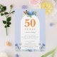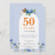A tipografia elegante combina com flores de aquarela para dar a este convite de aniversário de casamento um estilo suave e delicado. Vintage em sua estética, essa design apresenta cores azul pastel, laranja poeirento e branco. Fácil de personalizar com os detalhes do seu evento, excelente para um aniversário de 50 anos, mas também editável para QUALQUER NÚMERO seguindo as instruções simples.