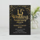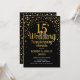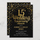 15 de Aniversário de Casamento Convite Elegante design a preto com letra falsa de script de ouro e confete. Envie-me uma mensagem se precisar de um ano personalizado.