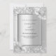 Fundo de aspecto fino prateado decorado com flores, flores e brilho fino prateado, brilhos. Personalize e adicione seus nomes e detalhes da festa. Letras negras.