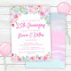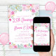 Convite de festas de 25 floral de lavanda de Casamento com cor azul rosa, usando uma fonte moderna.