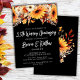 25 Floral de outono preto e branco convite de festas de aniversário usando uma fonte moderna.