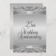 Convites elaborados de aniversário de casamento de prata para uma recepção de casamento/festa de 25. Prata frente e verso com texto preto nas costas dando uma vista de classe a este convite único de aniversário.
