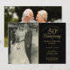 Personalize com a sua foto de casamento favorita e os detalhes da sua celebração especial de aniversário de casamento de ouro de 50 anos em tipografia dourada elegante em um fundo preto. O verso apresenta uma segunda foto especial. Concebido por Thisisnotme©