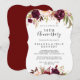 Este convite de aniversário de casamento de 50 anos com tema floral rustic boho é perfeito para um evento moderno. O design apresenta peônias em aquarela rosa, roxo, vermelho e burgundy agrupadas em buquês elegantes com folhagem verde, inspirando beleza natural.