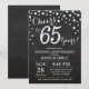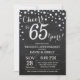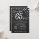 Convite de Aniversário de Casamento de 65 Anos Quadro de Giz Preto e Prata. Aniversário de Casamento de Sessenta e Cinco Anos. Fundo de Diamante Brilhante Preto e Prata. Confetes Prateados. Aniversário de Adulto. Festa de Aniversário de Homem ou Mulher. Para personalização adicional, clique no botão "Personalize" e use nossa ferramenta de design para modificar este modelo.
