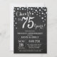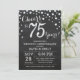 Convite de Aniversário de Casamento de 75 Anos Quadro Negro e Prata. Aniversário de Casamento de Setenta e Cinco Anos. Fundo de Diamante Brilhante Preto e Prata. Confetes Prateados. Aniversário de Adulto. Festa de Aniversário de Homem ou Mulher. Para personalização adicional, clique no botão "Personalize" e use nossa ferramenta de design para modificar este modelo.