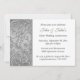 O lado esquerdo deste convite plano tem uma borda de folha floral espiralada contra um fundo vibrante com aparência de prata. Modelos cinzas para sua redação personalizada aparecem à direita e o verso tem um modelo de foto para sua imagem.