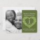 Convite de aniversário de 1º casamento Peridot em torno de um coração. Lindos cristais em estilo peridot em forma de coração, gráficos impressos convite de aniversário de casamento personalizável com os detalhes da festa de aniversário de casamento e foto do casal feliz. Gráficos e design originais de cristais verdes em estilo peridot por www.mylittleeden.com e www.mylittleedenweddings.com