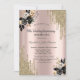 Um moderno, chique e glamouroso com gotas de ouro e rosas pretas sobre fundo rosa dourado.