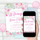 Convite de festas de pêssego azul-rosa, floral de 1rua, lavanda de Aniversário de Casamento usando uma fonte moderna.