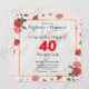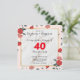 Convite de Aniversário de Casamento de Rubi de 40 anos chique e elegante, com detalhes de falso brilho dourado emoldurados por rosa vermelha, tudo em um fundo branco alabastro impecável. Os detalhes da tipografia em fonte decorativa são fáceis de personalizar. Um design moderno e sofisticado.