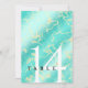 Adicione sofisticação às comemorações de aniversário de casamento de 11 ou 44 turquesa com este cartão de mesa, que contém uma elegante inscrição em um mármore amarelo e um fundo azul esverdeado. Personalizar com o número da tabela. O reverso mostra design idêntico. Design © W.H. Sim. Mais informações em zazzle.com/expressionsoccasions