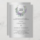 Um fundo de olhar mal prateado. Uma coroa floral feita de flores lavandas e de eucalipto verde de cor aquosa. Personalize e adicione seus nomes, detalhes. Texto preto.