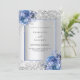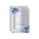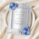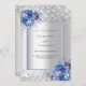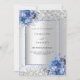 Fundo de aspecto fino prateado decorado com rosas azuis, flores e confete. Personalize e adicione seus nomes e detalhes do casamento. Letras negras.