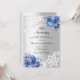 Para um elegante e romântico aniversário de 25. Um fundo com aspecto fino prateado decorado com flores azuis, rosas e rendas brancas. Personalize e adicione seus nomes e detalhes.