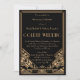Um convite corajoso e elegante, do vintage do estilo 50th do casamento da festa de aniversário com um tema grande Gatsby" dos anos 20 rujir de "em tons do preto e do ouro. Um fundo preto destaca a geométrica intrincado, beira do estilo do art deco em tons bege dourados. Decorativas, as pias batismais do estilo do período foram selecionadas para seu fraseio do evento. Selecione seu tipo de papel desejado para o efeito completo.