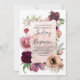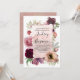 Convites de aniversário de casamento com flores vintage em aquarela rosa empoeirado e vermelho borgonha