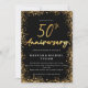 Este é um convite de festas simples e chique para convidar seus convidados para comemorar seu ouro 50º aniversário de casamento em estilo. É um simples e na moda, design de guião manuscrito em ouro, com uma borda de ouro mais brilhante sobre fundo preto quic. Entre em contato com o designer para obter informações sobre este design.