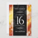 Faça do 16º aniversário de casamento do topaz do ouro uma celebração inesquecível com estes, exceto os anúncios de data! As letras esbeltas, pretas e brancas, com o confete hexagonal no fio amarelo-vermelho-laranja profundo e nos fundos pretos acrescentam um toque memorável para esta ocasião especial e marco. Personalize com nomes, local, endereço, data e hora do casal. Design © W.H. Sim. Mais informações em zazzle.com/expressionsoccasions