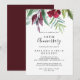 Este convite de aniversário de casamento tropical caligráfico é perfeito para uma celebração rústica de aniversário de casamento. Este encantador design pintado à mão apresenta preciosas flores de borgonha, roxo e folhagem verde dispostas de forma elegante em buquês.