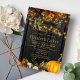 Lindo laranja enferrujado e escuro burgundy outono outono caem flores e bordas de abóbora com cordas de ouro brilhando sobre um fundo de madeira marrom escura fazer um charmoso convite de bolsa mensageifesta de aniversario elegante com uma tenda escrita à mão com um roteiro de tipografia de ouro. ++++++++ Fácil de personalizar com seus detalhes! Adequado para a rústica tradicional | país | fazenda | reuniões familiares e amigos de quintais exteriores.