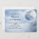 Convite de festa de aniversário com um céu azul sombrio cênico com nuvens e uma grande e bela lua. 2 cisnes brancos voando juntos. Design de fantasia mágica.