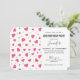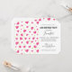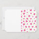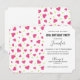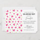 Um convite de aniversário com um padrão fofo composto por corações cor-de-rosa e verde em um fundo branco.