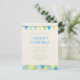 Convite de aniversário colorido para a festa de aniversário de um miúdo. Com os pennons da corda em verde, azul, amarelo.