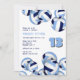 Este convite de festas temático de vôlei fofo para um aniversário ou grupo apresenta clusters de volichões azuis-claros, azuis-marinhos e brancos nas bordas superior e inferior da frente e um cluster de solteiros que cobre a parte de trás do convite - personalize os detalhes da festa em um fundo branco - por katz_d_zynes