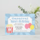 As crianças ficarão entusiasmadas em receber este convite de aniversário de carnaval azul com sua paleta colorida e que contém seus itens favoritos como pipocas e balões. Depois de receber este convite, as crianças estarão ansiosas pela festa, pois sabem que vai ser um evento divertido! Projetado por Rusty Doodle.