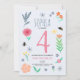 Este design de convite giro e giro aniversário de criança apresenta um design floral, com flores, abelhas e botânicos, e um padrão de primavera correspondente no verso. O convite pode ser personalizado com todas as informações de que você precisa para a festa do seu filho em uma tipografia química. Os convites florais cor-de-rosa perfeitos para o seu primeiro, segundo, terceiro ou quarto aniversário!