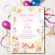 Convite para aniversário de criança de aquarela de jardim de fada. Colorida e super fofa. Nome editável, endereço.