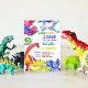 Modelo convite de festas de aniversário de criança de dinossauros coloridos brancos.
