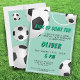 Convite De Aniversário de criança De Esporte De Bola De Futebol. O design tem uma mensagem divertida de "Arranje alguma diversão" e bolas de futebol em um fundo verde. Personalize com suas informações.