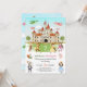 Um Convite de aniversário de Conto de Fada e Princesa Crianças. A cena da aquarela mostra dragões voando ao redor do grande castelo, enquanto cavaleiros e princesas bonito posam na grama. Personalize adicionando seu evento de cheio e os detalhes de contato.