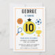 Celebre o seu pequeno estrelinho com este aniversário de criança desportivo moderno! Projetado com um estilo moderno e fresco, este convite é perfeito para qualquer jovem fã de esportes que ame basquete, futebol, ou beisebol. Negrito e divertido, ele define o tom perfeito para uma festa de aniversário do dia do jogo. Personalize facilmente com o nome, a idade e os detalhes da festa do seu filho para criar uma manutenção única. Excelente para celebrações no interior ou no exterior, este convite para o tema desportivo traz energia e entusiasmo ao dia especial do seu filho. Uma escolha vencedora para pais planejando uma celebração de aniversário divertida, esportiva e inesquecível!