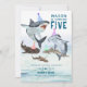 Convide todos a natação com estas designs de festa de aniversário de tubarão excelente! Esta design mostra uma escola de tubarões festivos de aniversário todos vestindo chapéus divertidos! Edite facilmente a idade e o texto com suas informações de festa de aniversário. Veja a coleção inteira para mais itens correspondentes!