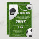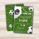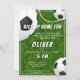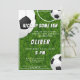 Convite para Aniversário de criança de Futebol de Futebol de Grass. O design tem uma mensagem divertida de "Arranje alguma diversão" e bolas de futebol num fundo de textura verde. Personalize com suas informações.