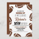 Apresentando o encantador convite para Aniversários de criança de futebol moderno! Este encantador convite combina o amor pelo futebol americano com uma vibração contemporânea e divertida. Sua cor castanha e ilustração adorável de um jogador de futebol novato instantaneamente cativante. A tipografia, com uma mistura de fontes divertidas, acrescenta um elemento de diversão e entusiasmo. Ideal para crianças que amam o esporte, este convite exude um apelo moderno e bonito, criando uma celebração de aniversário inesquecível e alegre centrada no seu esporte favorito. Prepare-se para um cheio de riso e alegria com tema desportivo!