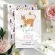 Um belo convite para aniversários de criança para meninas que apresentam um gato de mesa gengibre com uma bola rosa na frente e espaço para personalização. O dorso mostra um padrão de gatos todo-o-terreno para charme extra. Projetado como um convite para o quinto aniversário, mas fácil de personalizar para qualquer idade. Perfeito para uma festa de gatinho ou gatinho.