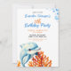 Design de golfinho encantador, rodeado por corais e bolhas, perfeito para adicionar um toque inspirado no oceano à celebração.