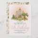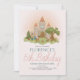 Este design de aniversário de criança de um conto de fadas mágico apresenta um príncipe e uma princesa modernos, com um castelo encantado, flores, lebres, cervo mágico e cogumelos brancos. No verso do convite está um padrão detalhado de conto de fadas. Este convite cor-de-rosa "uma vez por vez" pode ser facilmente personalizado com o nome das suas raparigas e outros detalhes necessários para a sua festa. A perfeita adição encantada à festa de aniversário do conto de histórias do seu filho. Este convite está definido para um 5, mas é fácil de editar em 'personalizar este modelo' para qualquer idade!
