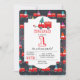 Uma bela ilustração de um padrão de caminhão de incêndio vermelho com chapéus de festa, soprando chifres de festas e chuvas de confete. O adorável motor de incêndio vermelho a apressar-se para apagar um incêndio. Design de celebração ideal para uma festa de aniversário ou qualquer outro evento especial. Decoração de festa de aniversário ideal ou presente de aniversário para os entusiastas de caminhões de emergência.