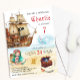 Um pirata e uma sereia oceânica temia o convite de Aniversário da criança. A design de aquarela apresenta um navio pirata no mar navegando em direção a um tesouro, enquanto uma sereia é vista no mar e sentada na costa. Personalize editando o convite digital ou impresso com seus detalhes.