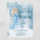 Um modelo de convite para o Aniversário da princesa de neve de inverno. A design de aquarela apresenta uma bela princesa numa paisagem mágica de terra maravilhosa do inverno. Personalize editando o convite digital ou impresso com seus detalhes.