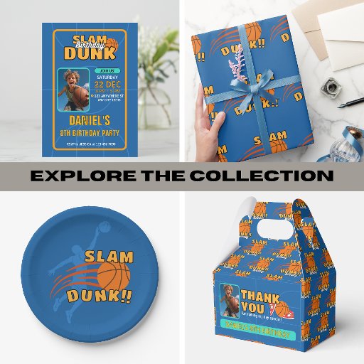 Convites Aniversário de criança de Slam Dunk de Basquete Az