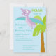 Comece a comemorar com este adorável convite para aniversários de criança. Ele é colocado sobre um fundo azul claro do céu com uma palmeira de um lado com um pterodátilo roxo voando acima. Veja nossos outros designs e cores nesta linha.© JW Ilustrações