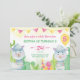 O fantástico convite de aniversário apresenta lhamas e cactos aquarelas em fundo branco. Adicione seus detalhes de evento a este modelo fácil de usar para torná-lo um convite exclusivo.